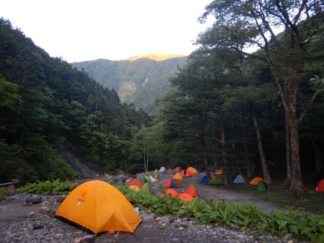 初めての南アルプス。新幹線で大宮経由長野県佐久平駅下車。佐久平駅からレンタカーで2時間かけて長野県伊那市の戸台パークへ。そこからバスで北沢峠下車。長衛小屋キャンプ場でキャンプ。ビール飲んで就寝。
